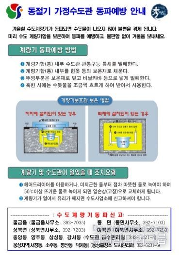 상하수도사업소 관계자는 “동파 예방은 시민들의 작은 관심에서 시작된다. 주민들의 협조가 동파 피해를 최소화할 수 있는 가장 중요한 열쇠”라고 강조했다.