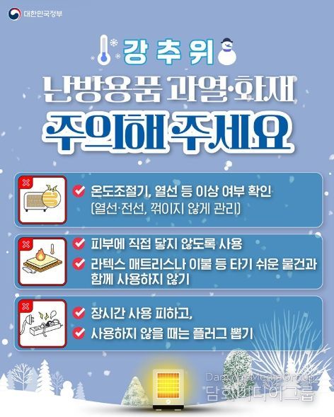 시민행정신문 장규호 기자 | 강추위, 난방용품 과열·화재 주의해주세요.