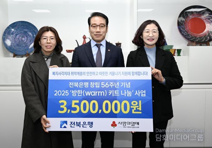 전상익 전북은행 부행장은 “지역사회의 한 구성원으로서 어려운 이웃과 따뜻한 마음을 나누고자 이번 기부를 마련했다”라며 “앞으로도 지역사회 발전과 소외계층 지원에 앞장서며 나눔의 가치를 실천하겠다”라고 말했다.