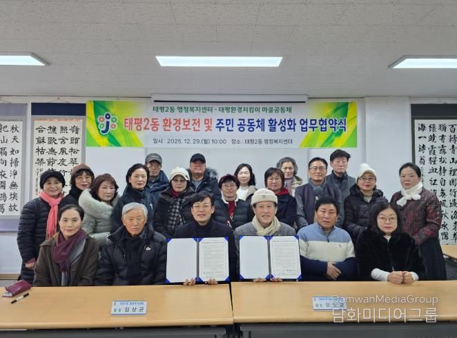 김상균 동장은 “이번 협약이 지속가능한 환경보전과 더불어 지역 주민이 주도하는 공동체 활성화의 토대가 될 것”이라며, “더 깨끗하고 주민 모두가 행복한 태평2동을 만들기 위해 단체와 적극적으로 소통하겠다”라고 말했다.