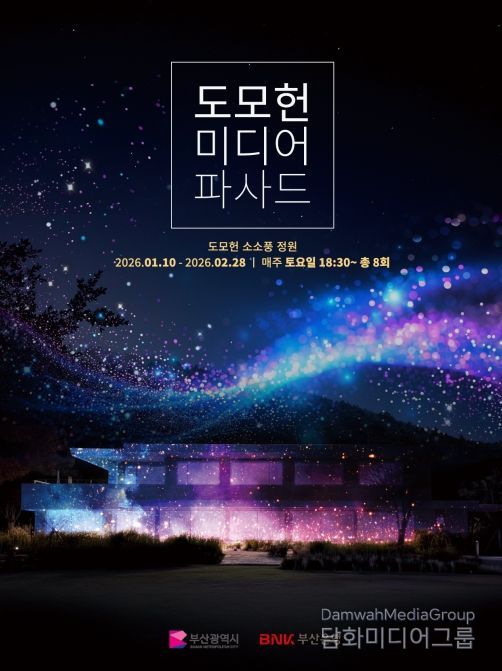 시민행정신문 강갑수 기자 | 부산시는 비엔케이(BNK)부산은행과 공동으로 겨울철 야간 관광 활성화와 시민들의 문화 향유 기회 확대를 위해 오는 2026년 1월 10일부터 2월 28일까지 매주 토요일 오후 6시 30분, 도모헌 소소풍 정원에서 '도모헌 미디어파사드 전시행사'를 개최한다고 밝혔다.