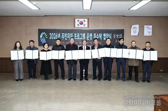 시민행정신문 강갑수 기자 | 홍성군은 지난 29일 군청 회의실에서 김노성 홍성군주민자치협의회장을 비롯한 11개 읍‧면 주민자치회장이 참석한 가운데 ‘2026년 주민자치센터 프로그램 운영 위‧수탁 협약식’을 개최했다.
