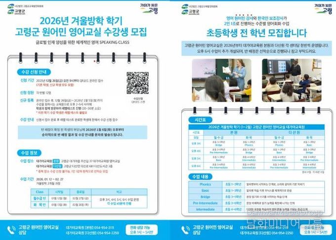 고령군 관계자는 “원어민과의 수업을 통해 학생들이 자연스럽게 영어에 대한 자신감을 얻고, 다양한 문화적 경험을 쌓아 글로벌 인재로 성장할 수 있기를 기대한다”고 밝혔다.
