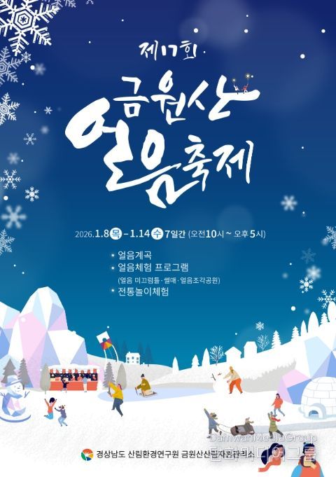 시민행정신문 기자 | 경상남도 금원산산림자원관리소는 30일 겨울 대표 축제인 '제17회 금원산 얼음축제'가 2026년 1월 8일부터 14일까지 거창군 금원산자연휴양림 일원에서 열린다고 밝혔다.