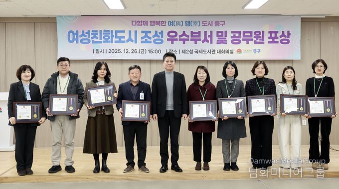 시민행정신문 강갑수 기자 | 인천시 중구는 지난 26일 제2청 대회의실에서 2025년 여성친화도시 사업의 성공적인 추진에 이바지한 6개 부서와 4명의 공무원에게 상장을 수여하는 행사를 개최했다.