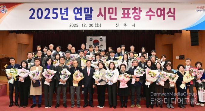 시민행정신문 강갑수 기자 | 진주시는 30일 시청 시민홀에서 지역사회 발전과 선행 활동을 몸소 실천하며 공동체의 귀감이 된 시민 98명을 대상으로 ‘2025년 연말 시민 표창 수여식’을 개최했다.
