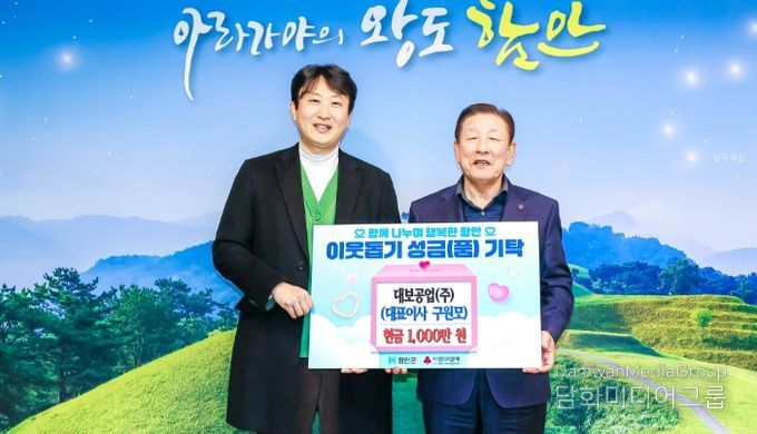 시민행정신문 강갑수 기자 | 함안군은 지난 30일 대보공업 주식회사(대표이사 구원모)에서 지역사회를 향한 따뜻한 동행에 나서며 성금 1000만 원을 기탁했다고 밝혔다.
