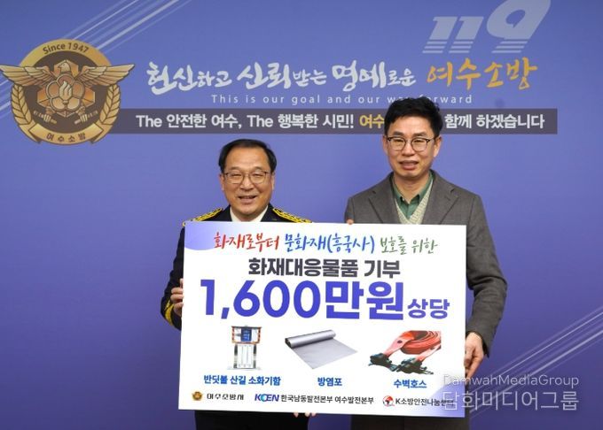 조천환 한국남동발전 여수발전본부장은 “지역사회와 함께 안전을 지켜야 한다는 공기업의 사회적 책임을 실천하고자 이번 기부를 마련했다”며 “기부한 화재안전물품이 겨울철 화재 예방과 문화재 보호에 도움이 되길 바라며, 앞으로도 지역 안전을 위한 협력을 지속해 나가겠다”고 밝혔다.