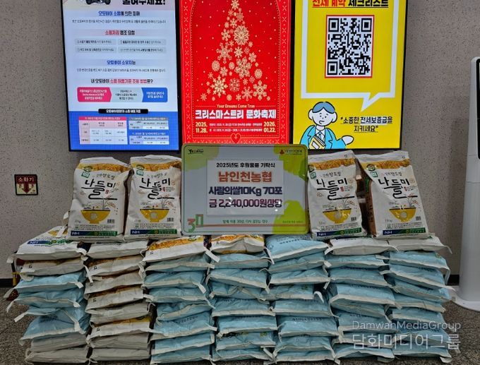 이에 앞서 지난 29일에는 남인천농협(조합장 이태선)이 겨울철 추위와 경제적 어려움으로 이중고를 겪고 있는 소외된 이웃을 돕고, 지역사회 나눔 문화를 확산하기 위해 ‘사랑의 쌀’ 70포(700kg)를 기탁했다.