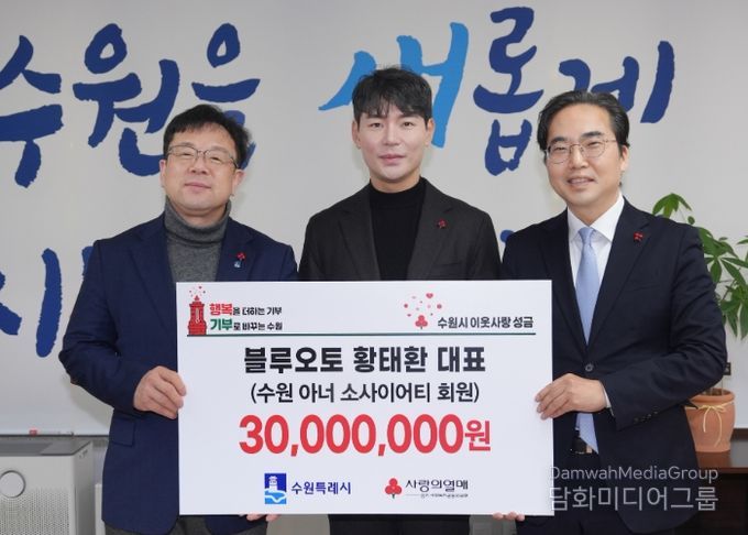 시민행정신문 강갑수 기자 | 황태환 블루오토 대표가 12월 31일 “취약계층 아동 지원에 사용해달라”며 3000만 원을 수원시에 기부했다.