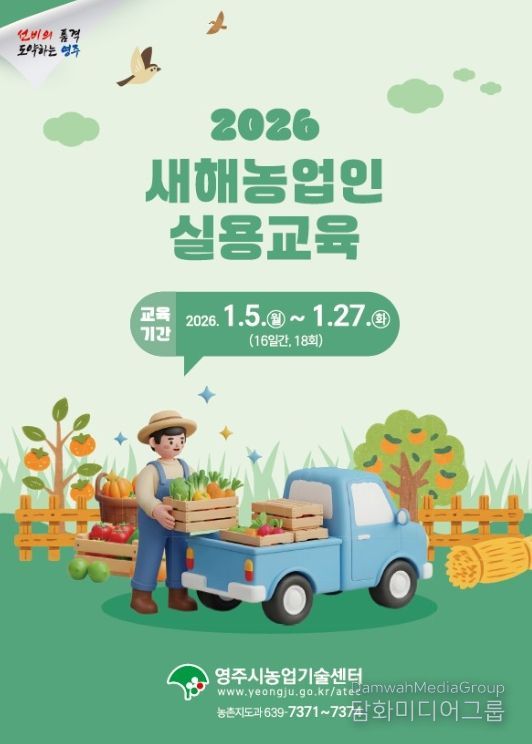 시민행정신문 이세훈 기자 | 영주시는 오는 1월 5일부터 27일까지 이상기상에 대응하고 경쟁력 있는 농업 기반을 마련하기 위해 ‘2026년 새해농업인 실용교육’을 실시한다.