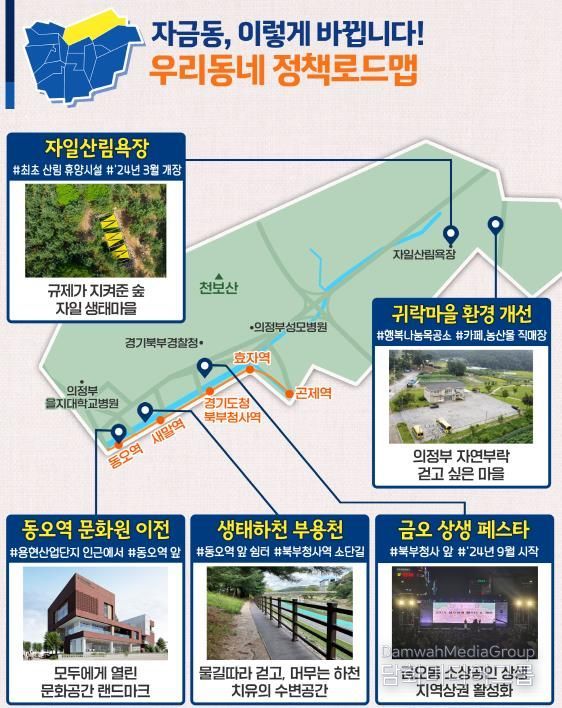 시민행정신문 강갑수 기자 | 의정부시는 시민 생활과 밀접한 행정‧인프라‧복지‧문화 등에 대한 정보를 지역 단위로 정리한 ‘우리동네 정책로드맵’ 자금동편을 2일 발표했다.