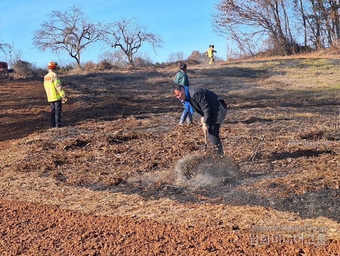 시민행정신문 강갑수 기자 | 완주군의회 이주갑 자치행정위원장이 지난달 31일 연말 종무식 일정 중 발생한 산불 현장을 발견하고, 즉각적인 신고와 함께 119대원, 주민들과 협력해 직접 진화 작업에 나서며 신속한 초기 대응으로 피해 확산을 막았다.