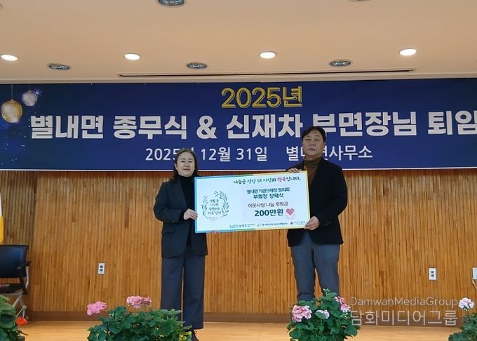 시민행정신문 강갑수 기자 | 남양주시는 지난달 31일 열린 ‘2025년 별내면 종무식’에서 별내면 기관단체장협의회가 지역 내 취약가구 지원을 위해 후원금 200만 원을 별내면 지역사회보장협의체에 기탁했다고 2일 밝혔다.