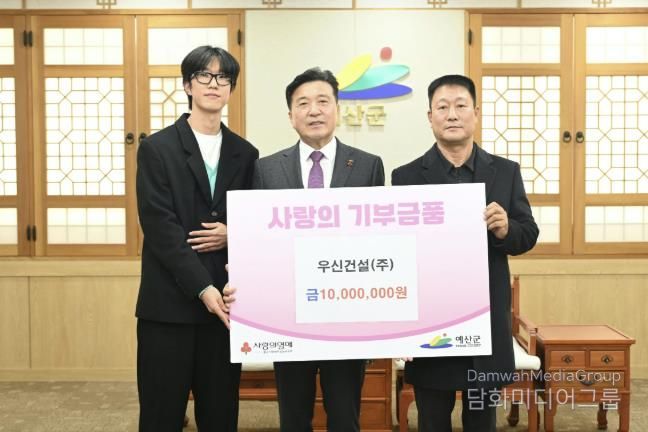 시민행정신문 강갑수 기자 | 예산군은 전문건설업체 우신건설㈜이 군청을 방문해 ‘희망 2026 나눔캠페인’ 이웃돕기 성금 1000만원을 기탁했다고 밝혔다.