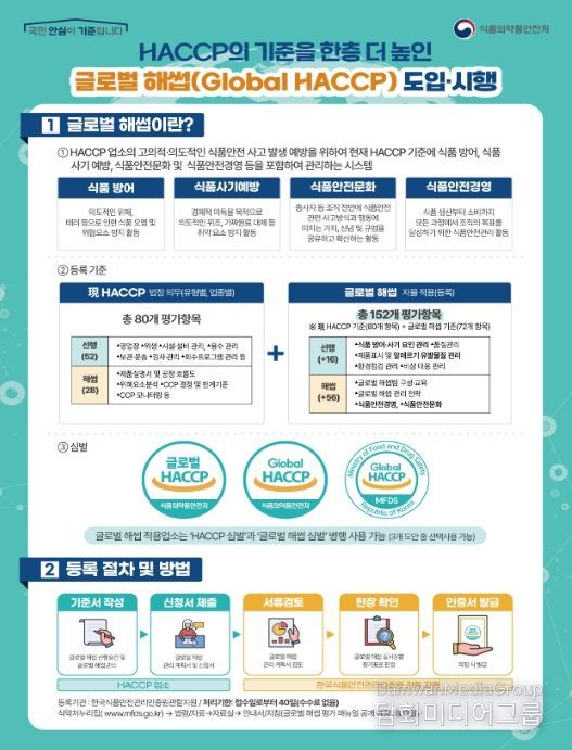 참고로 식약처는 지난해 글로벌 해썹 등록 평가 매뉴얼 배포, 도입 희망 업체 대상 교육과정 운영 등을 추진하며, 씨제이제일제당(주) 등 총 13개 업체 54품목이 글로벌 해썹 등록을 완료했다.