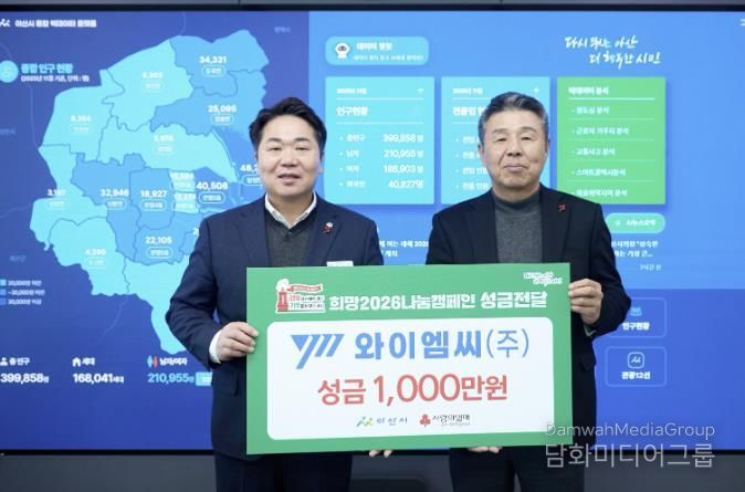 시민행정신문 강갑수 기자 | 와이엠씨(주)가 지난 5일 아산시를 방문해 ‘희망2026나눔캠페인’ 성금 1,000만 원을 기탁했다.