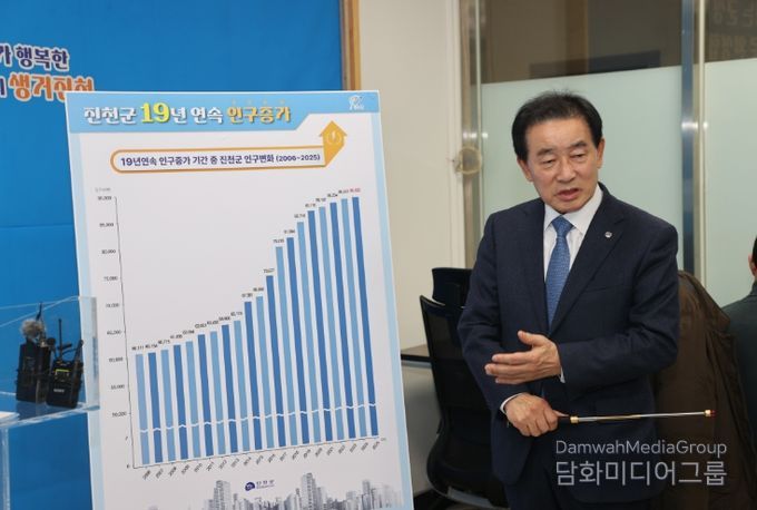 윤경순 군 인구정책과장은 “19년 연속 인구증가의 기록은 단순한 통계의 변화가 아니라, 진천군이 어떤 군정을 선택해 왔고 그 선택이 어떤 결과로 이어졌는지를 보여주는 상징적인 이정표라고 생각한다”며 “앞으로도 숫자에 매몰된 성장이 아닌 내실 있는 인구 성장 구조를 더욱 단단히 해 진천군이 지방정부의 성장 지침서 역할을 할 수 있도록 하겠다”고 말했다.