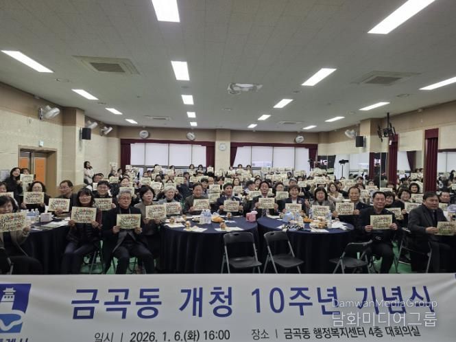 시민행정신문 강갑수 기자 | 2026년 개청 10주년을 맞은 권선구 금곡동은 지난 6일 지역구 의원과 주민 등 100여 명이 참석한 가운데 주민자치회 및 통장협의회와 함께 10주년 기념행사를 개최했다.