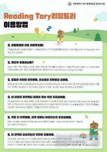 구 관계자는 “어린이들이 자신의 영어 독서 수준에 맞는 도서를 선택해 읽을 수 있도록 돕는 것이 목적”이라며 “영어 독서에 대한 부담을 줄이고 올바른 독서 습관 형성에 도움이 되기를 기대한다”고 말했다.