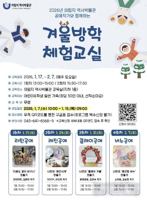 접수는 1월 15일 오전 9시까지 선착순으로 진행되며, 의림지 역사박물관 홈페이지 공지사항 게시판 혹은 박물관 소셜네트워크서비스(SNS) 등에 게시된 큐알코드를 통해 신청하면 된다.