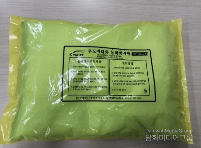동파방지팩은 스티로폼 조각과 방습제를 비닐팩에 담아 밀봉한 보온용 자재로, 수도계량기 위에 덮은 후 뚜껑을 닫아주기만 하면 공기 흐름을 차단해 계량기 동파를 효과적으로 예방할 수 있다.