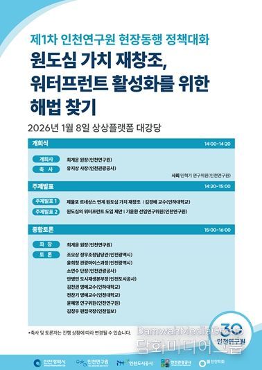 시민행정신문 강갑수 기자 | 인천연구원은 인천학회와 함께 1월 8일 제물포 상상플랫폼에서 정책 세미나를 공동 주최한다.