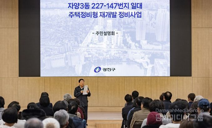 시민행정신문 강갑수 기자 | 광진구는 지난 7일 광진구청 대강당에서 자양동 227-147번지 일대 재개발사업 정비계획(안) 주민설명회를 개최했다.