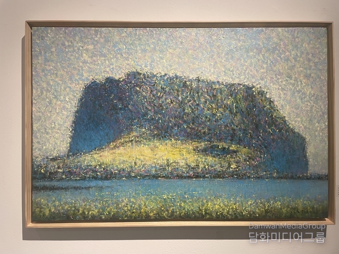 한라산과 바다,해변과 마을의 풍경은 수많은 색점의 중첩을 통해 시간의 흐름과 감정의 떨림으로 확장되며, 관람자에게 자연과 호흡하는 경험을 경험하게 하고 있다. 작가는 “자연의 호흡과 생명의 시간성, 끊임없이 생성과 소멸을 반복하는 자연의 생명력과 기적 질서, 눈에 보이지 않는 생명의 리듬을 회화로 표현한다.‘고 한다.