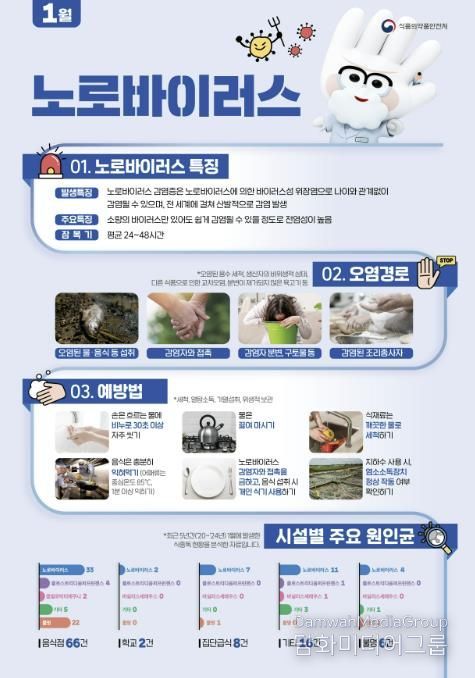 노로바이러스 감염증은 주로 11월부터 이듬해 4월까지 겨울철에 집중 발생하는 급성 장관감염병으로 매우 적은 양으로도 쉽게 감염되는 것이 특징이다. 주로 오염된 지하수나 굴, 조개 등 어패류를 통해 주로 전파되며, 환자의 구토물이나 분변을 통한 2차 감염도 흔하게 발생한다.