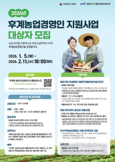 시민행정신문 이세훈 기자 | 금산군은 농업의 미래를 이끌 전문 농업인을 육성하기 위해 2026년도 후계농업경영인 신청을 오는 2월 11일까지 접수한다.