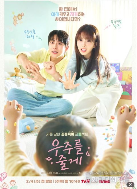 ‘우주를 줄게’는 첫 만남부터 꼬인 사돈 남녀가 하루아침에 20개월 조카 ‘우주(박유호 분)’를 키우게 되면서 벌어지는 좌충우돌 동거 로맨스를 그린다.