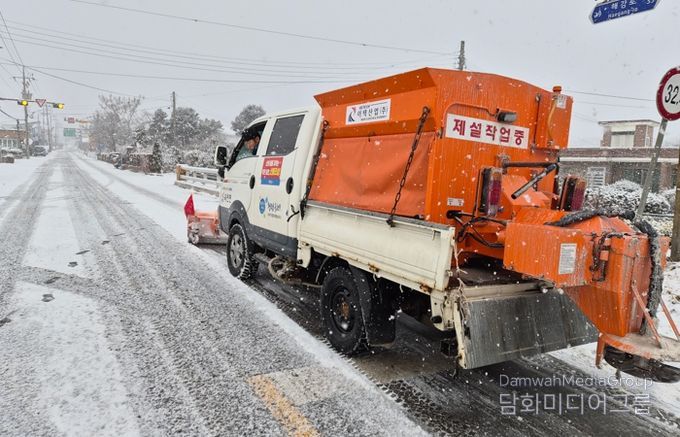 또한 원격 제어가 가능한 염수분사 장치를 활용해 제설 차량 접근이 어려운 급경사 구간인 갈두재, 오심재, 뚜드럭재 등 취약 지역에도 신속히 대응하고 있다. 읍·면별로 배부한 25kg 제설제 포대를 활용한 마을 단위 자율 제설 활동도 병행 추진 중이다. 해남읍 코아루 및 한듬어린이집 인근 경사로에 설치된 스마트 도로 열선은 강설 시 자동으로 작동해 적설과 결빙을 즉시 제거하며 미끄럼 사고 예방에 큰 효과를 보이고 있다.