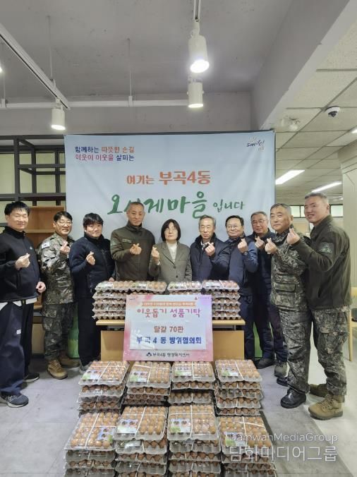 부곡4동 방위협의회는 매년 달걀과 성금 기탁 등 다양한 나눔 활동을 통해 지역사회 이웃사랑을 지속적으로 실천하고 있으며, 이번에 기탁된 물품은 관내 저소득 주민에게 전달될 예정이다.