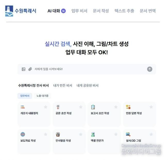 시민행정신문 강갑수 기자 | 수원특례시가 생성형 인공지능(AI)을 행정 전반에 활용하기 위해 12일 공직자를 대상으로 ‘수원 인공지능(AI) 업무 비서’ 서비스를 개시했다.