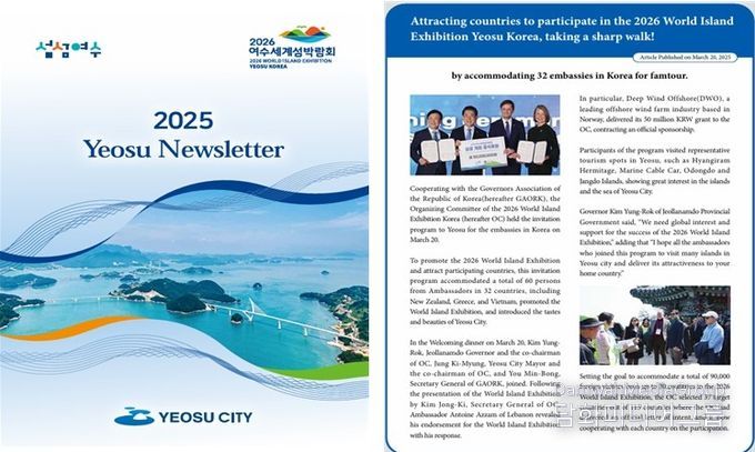 한편, 여수시는 국제 자매·우호도시를 중심으로 E-뉴스레터를 배포하며 여수세계섬박람회 온라인 홍보활동도 꾸준히 이어가고 있다.
