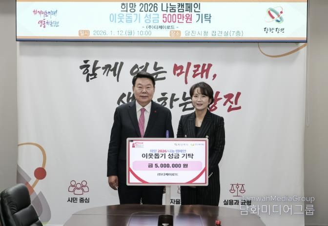 오성환 당진시장은 “어려운 시기에도 따뜻한 나눔을 실천해 주신 ㈜디케이로드에 깊이 감사드린다”며 “기탁해 주신 성금은 꼭 필요한 곳에 소중히 사용하겠다”고 전했다.