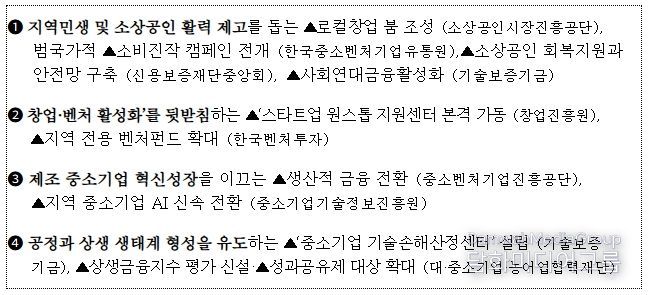 이 자리에서 중소벤처기업진흥공단, 소상공인시장진흥공단, 기술보증기금등 15개 기관으로부터 업무 보고를 받는 가운데, 중소기업중앙회, 벤처기업협회, 소상공인연합회, 코리아스타트업포럼 등 5개 민간 기업단체가 참여하여, 열띤 토론이 펼쳐졌다.