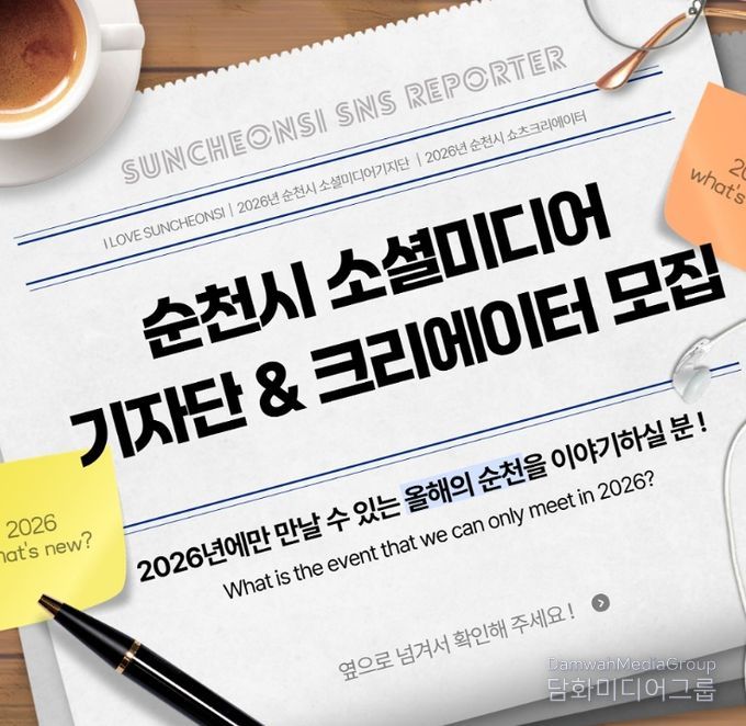 시민행정신문 강갑수 기자 | 순천시는 시민의 시선으로 시정 소식과 지역의 다양한 이야기를 전달하기 위해 ‘2026년 순천시 소셜미디어기자단 및 쇼츠크리에이터’를 오는 22일까지 모집한다고 밝혔다.