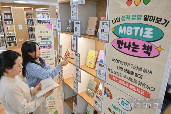 코너에는 MBTI 성격유형 검사지를 비치하고 유형별 추천 도서를 함께 진열해 이용자가 검사부터 도서 선택까지 한 공간에서 할 수 있도록 구성했다.