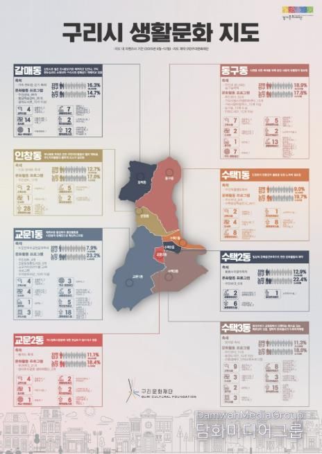 이번에 제작된 ‘구리시 생활 문화지도’는 구리시 동별 생활 문화 현안과 특성은 물론, 생활 문화 동아리·개인 활동가·단체·공간 등의 정보를 조사·연구해 시각화한 자료로, 포스터와 광고지 형태로 제작됐다. 이를 통해 지역 내 생활 문화 자원과 활동 주체를 한눈에 파악할 수 있도록 구성한 것이 특징이다.