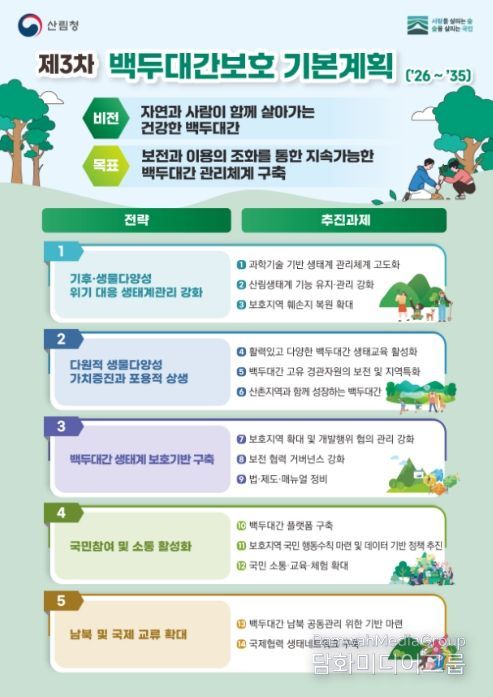 시민행정신문 김학영 기자 | 산림청은 백두대간을 국가적 생태자산으로서 가치를 높이기 위한 ‘제3차 백두대간 보호 기본계획(2026~2035)’을 14일 발표했다.