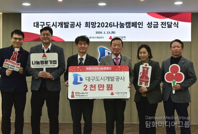 시민행정신문 강갑수 기자 | 대구도시개발공사는 1월 13일 사회복지공동모금회가 주관하는 ‘희망2026나눔캠페인’에 성금 2,000만 원을 기탁했다고 밝혔다.