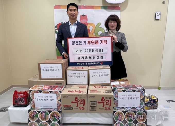 갈마1동 행정복지센터는 14일 휴리움어린이집으로부터 ‘우리가 함께라면’ 나눔 실천 행사를 통해 마련한 라면(20만 원 상당)을 기탁받았다.