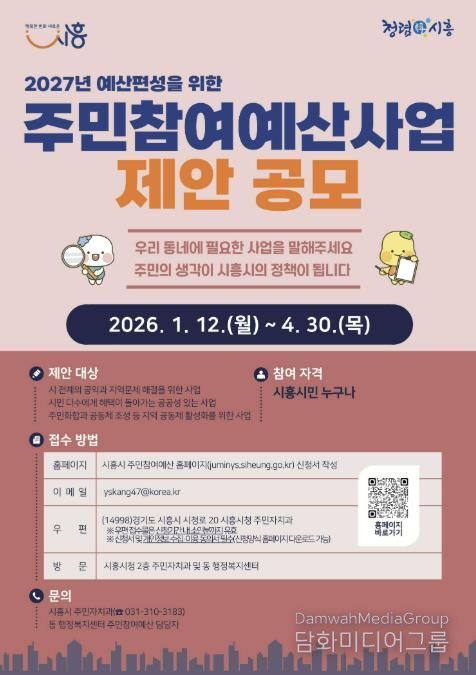 시민행정신문 강갑수 기자 | 시흥시는 오는 4월 30일까지 주민들이 직접 사업을 제안하는 ‘시흥시 주민참여예산 제안’을 신청받는다.
