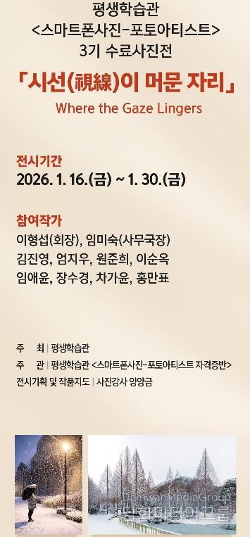 시민행정신문 강갑수 기자 | 광주시 평생학습관은 ‘스마트폰사진–포토아티스트’ 3기 수강생들의 교육과정을 마무리하며 수료사진전 ‘시선(視線)이 머문 자리’를 개최한다고 15일 밝혔다.