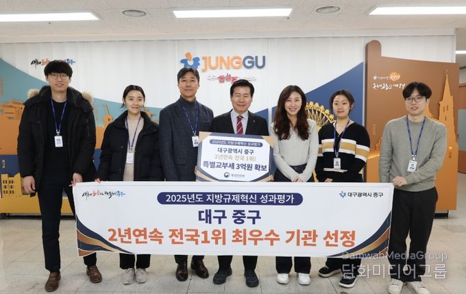 시민행정신문 강갑수 기자 | 대구 중구는 행정안전부가 주관한 ‘2025년 지방규제혁신 성과평가’에서 2년 연속 최우수 기관으로 선정되며 규제혁신 선도 도시로서의 위상을 다시 한번 입증했다.