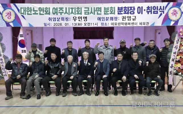 시민행정신문 강갑수 기자 | 금사면은 1월 13일, 이포권역행복센터에서 2026년 대한노인회 금사면분회장 이·취임식을 성황리에 개최했다. 이날 행사에는 금사면 기관·단체장과 각 경로당 회장 등 관계자들이 참석해 금사면 노인회의 새로운 출발을 함께 축하했다.