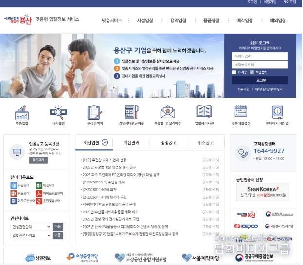 시민행정신문 강갑수 기자 | 서울 용산구가 2026년에도 ‘맞춤형 입찰정보시스템’을 운영해 지역 내 중소기업·소상공인이 관심 분야의 공공입찰 정보를 빠르고 정확하게 받아볼 수 있도록 지원한다. 정보 탐색 부담을 줄이고 공공조달 참여를 촉진해 지역 기업들의 판로를 개척하고 지역경제를 활성화하기 위한 취지다.