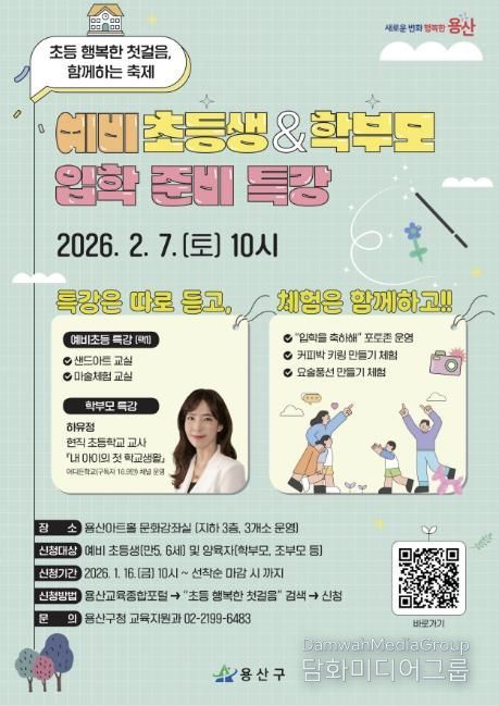 박희영 용산구청장은 “초등학교 입학을 앞둔 가정에 실질적인 도움과 따뜻한 응원을 전하고자 이번 행사를 준비했다”라며 “가족이 함께 교육도 듣고 추억도 남기며, 아이의 새로운 출발을 기쁘게 맞이하는 시간이 되길 바란다”라고 말했다.